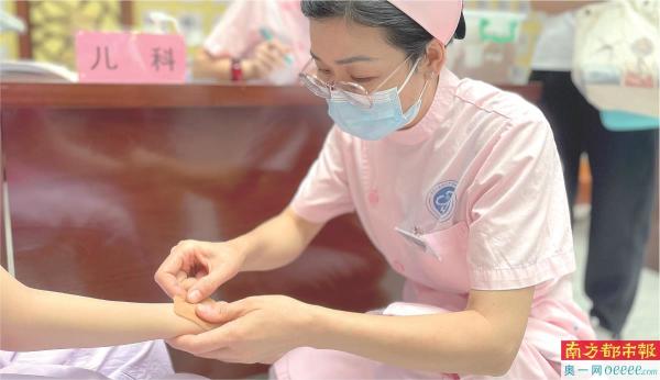北京中医药大学深圳医院(龙岗),护士在给患者贴“三伏灸”初伏。 南方日报记者 朱洪波 通讯员 梁舒婷 摄