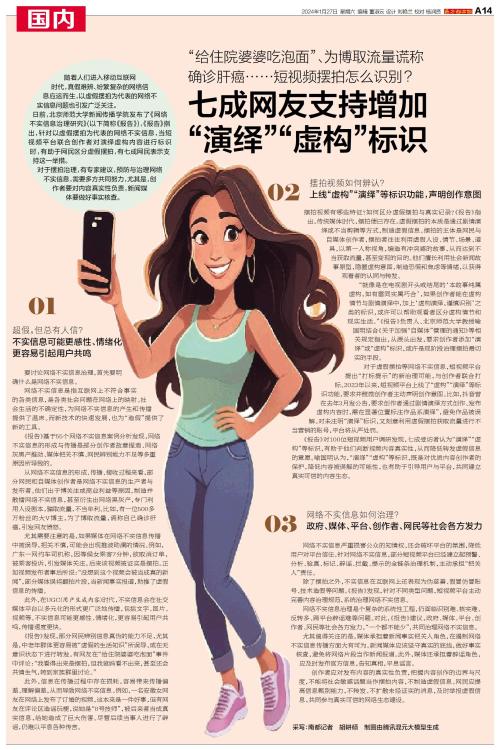 对于摆拍治理,有专家建议,预防与治理网络不实信息,需要多方共同努力,尤其是,创作者要对内容真实性负责,新闻媒体要做好事实核查。