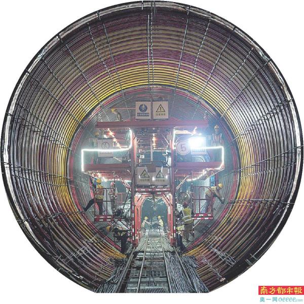 2022年10月21日,狮子洋海底60米处,珠三角水资源配置工程B3标,工人们正在进行预应力内衬施工作业。 南方日报记者 石磊 李赫 摄