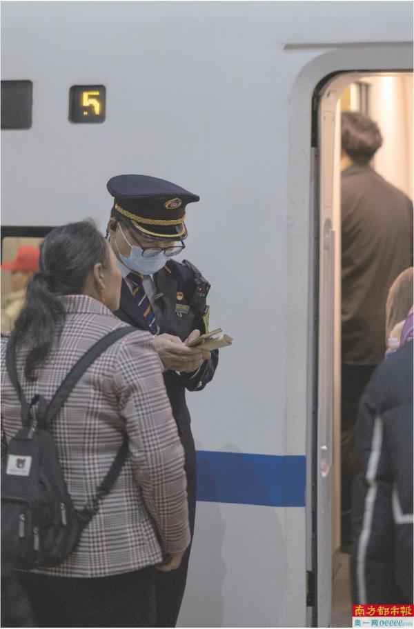 工作人员有条不紊地核对乘客的车票信息,防止他们上错车厢。