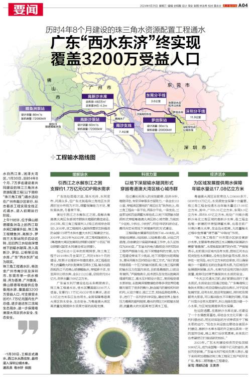水自西江来,润泽大湾区。1月30日,历时4年8个月、7万多名建设者共同建设的珠江三角洲水资源配置工程(以下简称“珠三角工程”)通水活动在广州市南沙区举行,标志着该工程实现全线正式通水,进入初期运行阶段
