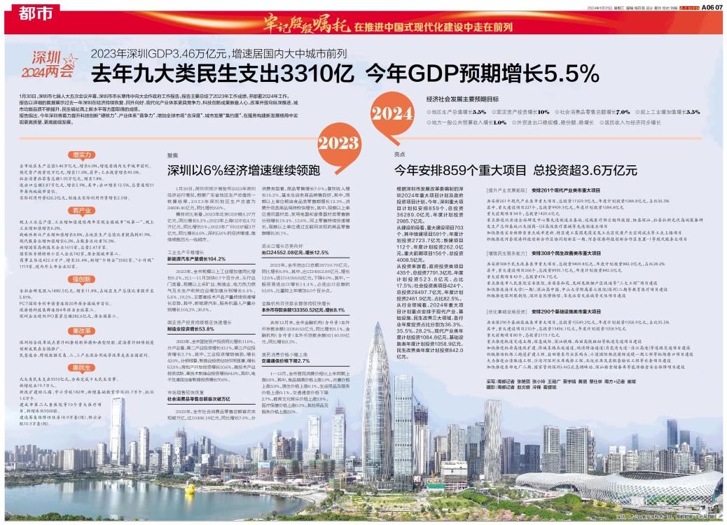 1月30日,深圳市七届人大五次会议开幕,深圳市市长覃伟中向大会作政府工作报告。报告主要总结了2023年工作成绩,并部署2024年工作。