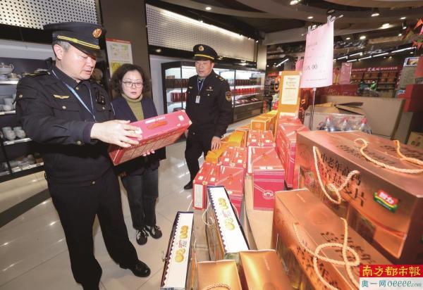 1月9日,浙江嘉兴市南湖区市场监管局建设所执法人员在江南超市内检查食品。 新华社发