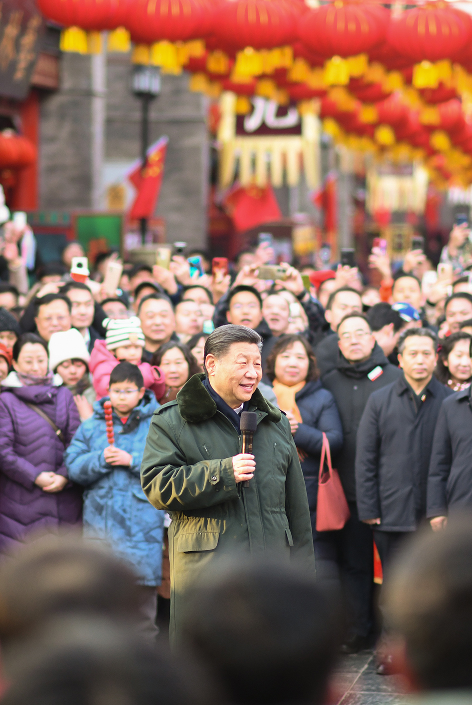 1日下午,习近平在天津古文化街考察时,向全国各族人民和香港同胞、澳门同胞、台湾同胞、海外侨胞致以美好的新春祝福。 新华社发