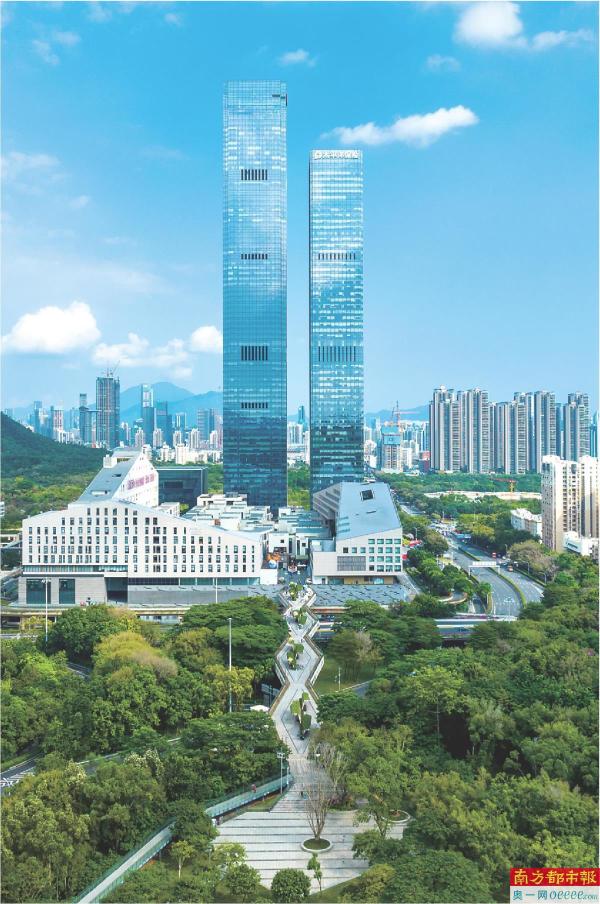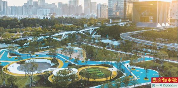 莲花山与笔架山之间的空中廊桥,名为“幸福廊桥”,它开通后,步行往返两大公园只需10分钟左右。而廊桥中段连接的是深业上城商业区,实现了城市生态、商业、生活之间的交互式连接。
