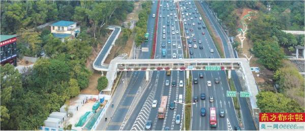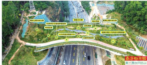 国内首座兼顾人行步道和独立生态廊道的廊桥,不仅考虑人的通行,更为动物而“连”。梅林山-银湖山生态廊道贯通深圳中部生态板块的主要生态廊道。鲲鹏径一号桥的贯通将两山缝合修复,衔接了中部五大公园体系,为深圳串联构建“一脊一带二十廊”魅力生态骨架发挥了示范带动作用。