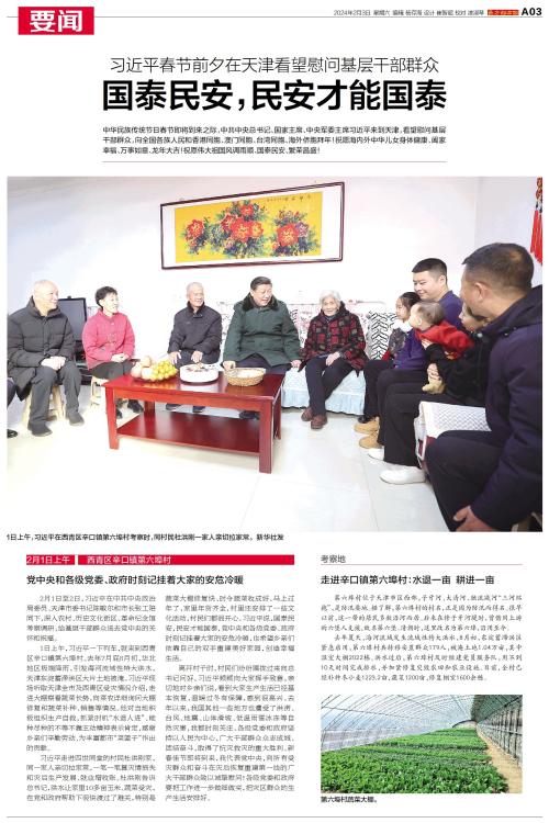 中华民族传统节日春节即将到来之际,中共中央总书记、国家主席、中央军委主席习近平来到天津,看望慰问基层干部群众。