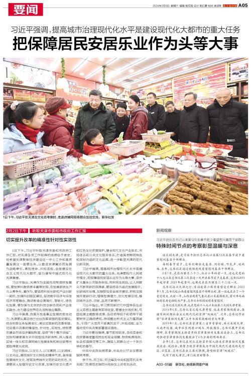 中华民族传统节日春节即将到来之际,中共中央总书记、国家主席、中央军委主席习近平来到天津,看望慰问基层干部群众。