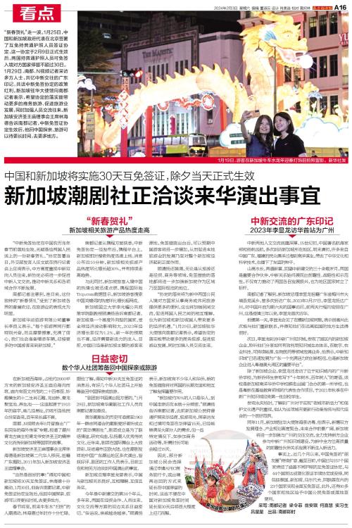 1月25日,中国和新加坡政府代表在北京签署了互免持普通护照人员签证协定,这一协定于2月9日正式生效后,两国持普通护照人员可免签入境对方国家停留不超过30日。
