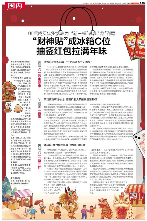 春节来一桌预制菜大餐、送人年货礼盒主打健康养生、生肖龙大红春联是植绒的、迷上赛博祈福转运,冰箱上贴满了各路财神……