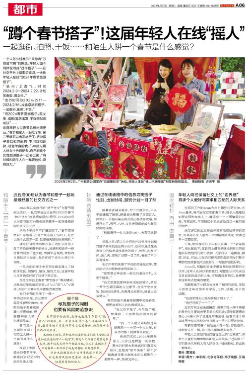 在社交平台上搜索“春节搭子”等关键词,从就地过年到组团旅游,从“e人”到“i人”小团体,无论什么需求几乎都能完美定制。