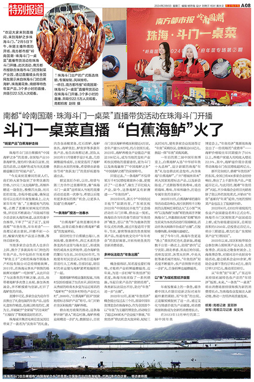 2月5日下午,伴随主播热情的开场,南方都市报“岭南国潮·珠海斗门一桌菜”直播带货活动在珠海斗门开播。