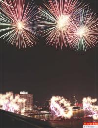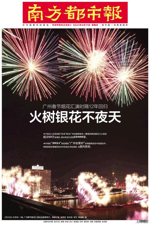 2月10日(大年初一)晚,广州春节烟花汇演在白鹅潭举行。