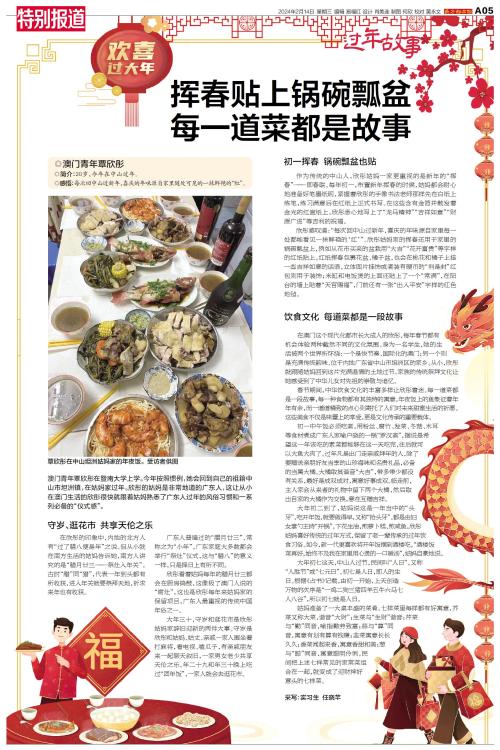 澳门青年覃欣彤在暨南大学上学。今年按照惯例,她会回到自己的祖籍中山市坦洲镇,在姑妈家过年。欣彤的姑妈是非常地道的广东人,这让从小在澳门生活的欣彤很快就跟着姑妈熟悉了广东人过年的风俗习惯和一系列必备的“仪式感”。