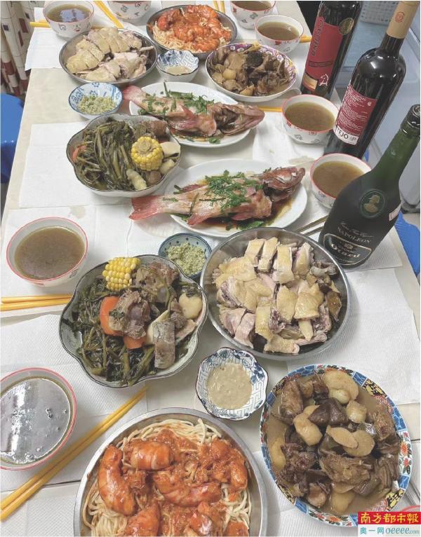 覃欣彤在中山坦洲姑妈家的年夜饭。受访者供图