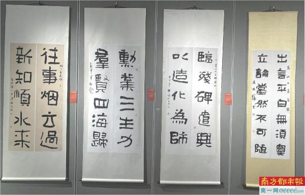 《以古为新——好太王碑集联书法邀请展》现场部分作品。
