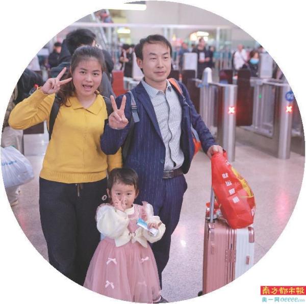 潘先生一家乘坐免费专列抵穗。南都记者 邹卫 摄