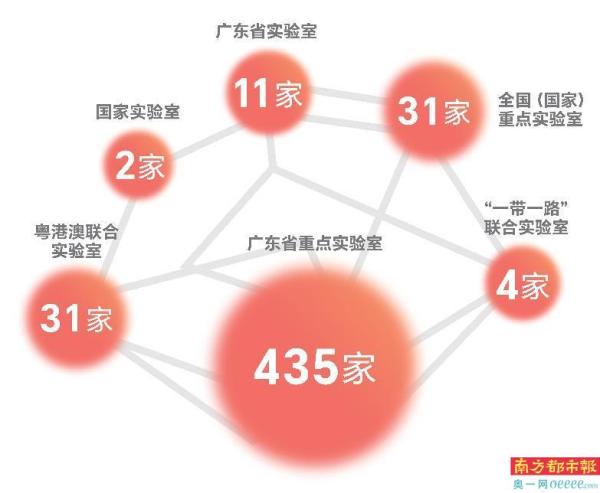 据广东省科技厅数据,目前全省已建有国家实验室2家,广东省实验室11家,全国重点实验室(国家重点实验室)31家,“一带一路”联合实验室4家,广东省重点实验室435家,粤港澳联合实验室31家。在重大科技基础设施与载体方面,全省已打造国家重大科技基础设施10个,地市拟建和在建重大科技基础设施19个,国家应用数学中心2个,高质量建设粤港澳大湾区量子科学中心与华南国家植物园等。