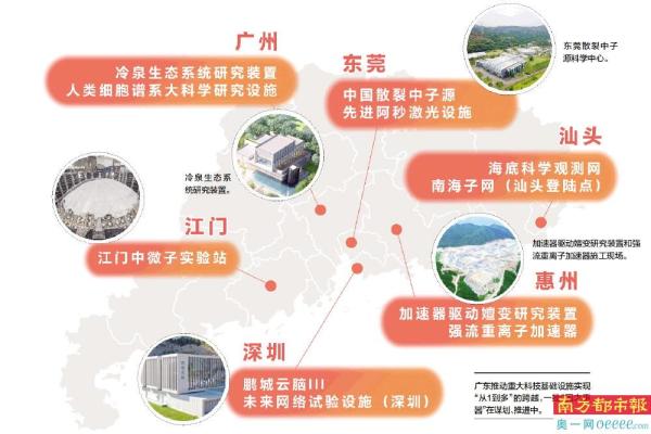 2020年7月,粤港澳大湾区综合性国家科学中心先行启动区获批。以此为牵引,广东推动重大科技基础设施实现“从1到多”的跨越,一批“国之重器”在谋划、推进中。在广州,冷泉生态系统研究装置与其配套科研综合楼落户南沙,人类细胞谱系大科学研究设施在中国科学院广州健康院加快建设;在东莞,松山湖材料实验室联合中国科学院物理研究所、西安光学精密机械研究所共建国内第一台先进阿秒激光设施;在深圳,智能超级算力平台“鹏城云脑III”已获批立项,未来网络试验设施(深圳)完成一期工程建设;在江门,我国第二代中微子实验装置——江门中微子实验装置在地下700米深处加紧建设;在惠州,加速器驱动嬗变研究装置和强流重离子加速器建设现场热火朝天;在汕头,海底科学观测网南海子网(汕头登陆点)有望在2025年建成……