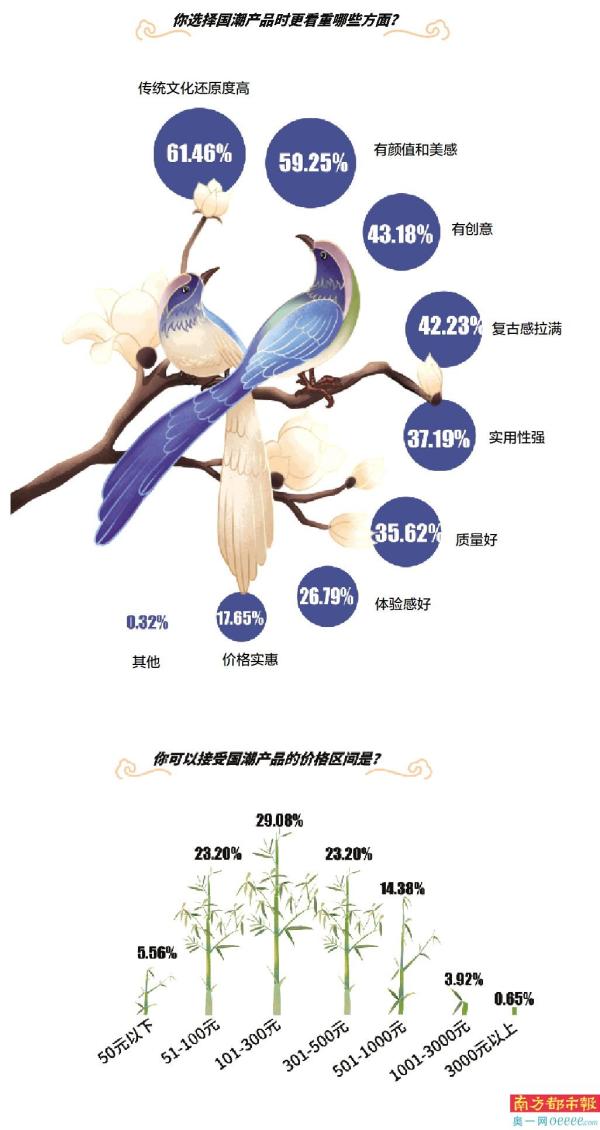 而受访青年选择实用性强、价格实惠的国潮产品比例相对较低。这意味着,情感价值和颜值超越了“性价比”,年轻人更愿意为“高品质”的国潮产品买单。