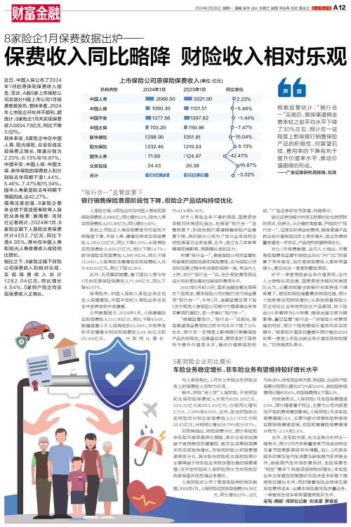 近日,中国人保公布了2024年1月的原保险保费收入报告,至此,A股5家上市保险公司及部分H股上市公司1月保费悉数发布。