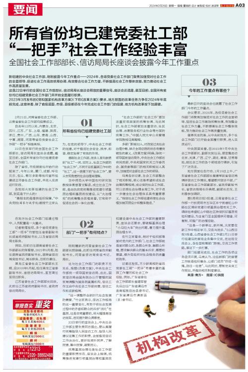 所有省份均已建党委社工部 “一把手”社会工作经验丰富