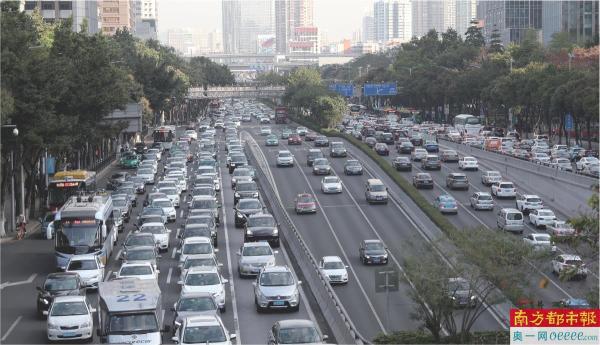 广州大道中早高峰,车辆排成长龙。 南都资料图