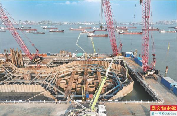 狮子洋通道是继港珠澳大桥、深中通道后粤港澳大湾区又一超级工程,技术难度大、建造工艺复杂。据介绍,项目部共投入80台设备,采用岛式法开挖、内衬逆筑法等施工工艺,150天完成了东锚碇土方开挖,并高效完成了封底工作。