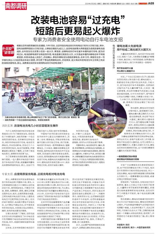 根据北京市消防救援总队的通报,今年1月份,北京市发生电动自行车和电动三轮车火灾有33起,其中,因电池故障导致的火灾有30起,占事故总数的九成以上。