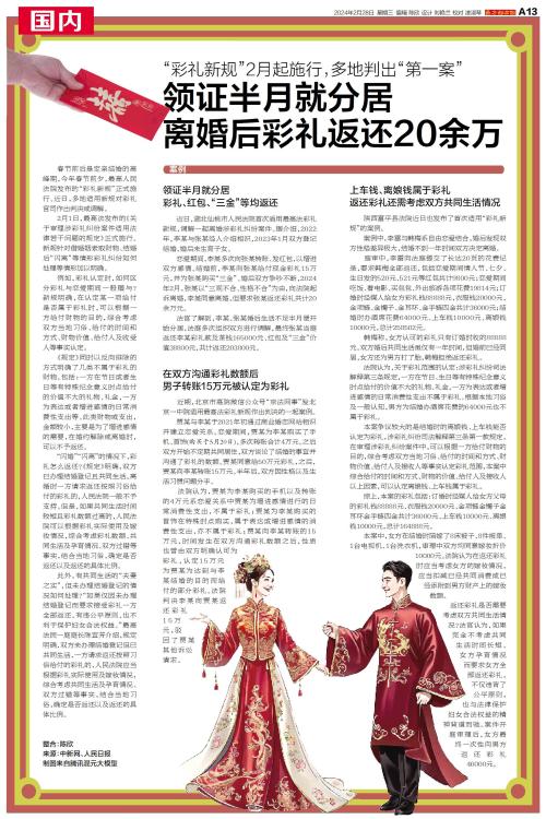 春节前后是定亲结婚的高峰期,今年春节前夕,最高人民法院发布的“彩礼新规”正式施行。近日,多地适用新规对彩礼官司作出判决或调解。