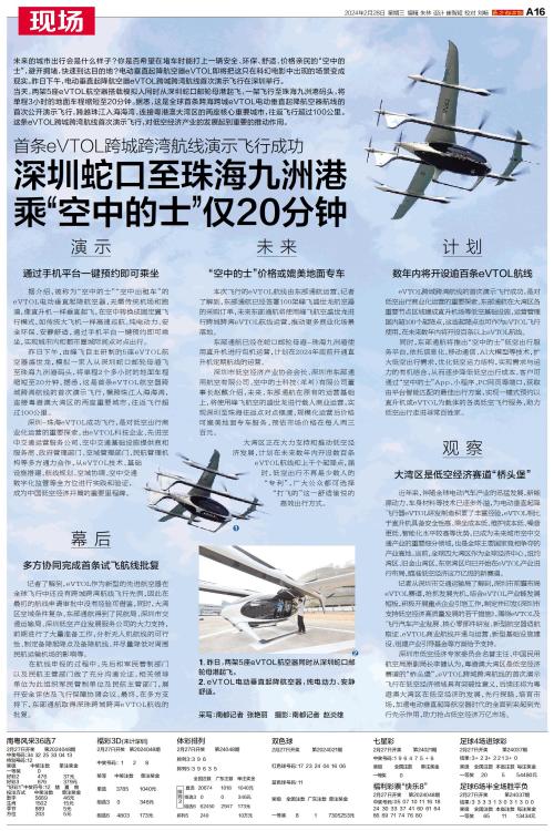 昨日下午,电动垂直起降航空器eVTOL跨城跨湾航线首次演示飞行在深圳举行。