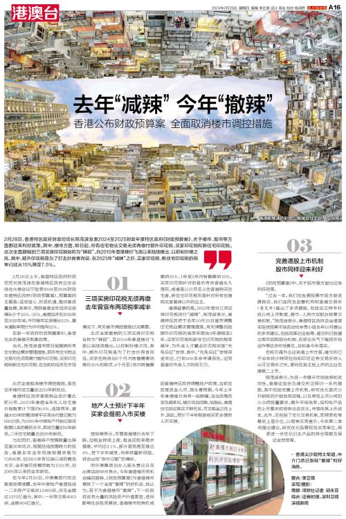 2月28日,香港特区政府财政司司长陈茂波发表2024至2025财政年度特区政府《财政预算案》,关于楼市、股市等方面都迎来利好政策。