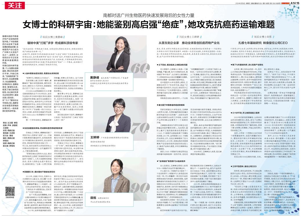 在“三八”国际妇女节到来之际,南都专访生物医药领域的女博士们,一起走进她们的科研宇宙。