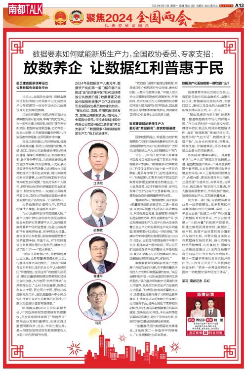 “要从供给、流通、应用三端共同发力,加快公共数据资源开发利用。”全国政协委员、恒银金融科技股份有限公司党委书记江浩然在“两会大家谈”-“数据要素X如何赋能新质生产力”线上论坛建言。