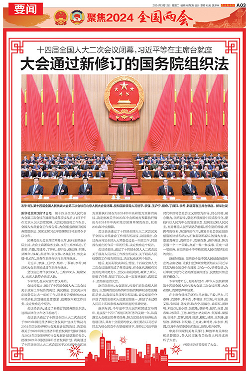 第十四届全国人民代表大会第二次会议在圆满完成各项议程后,11日下午在北京人民大会堂闭幕。