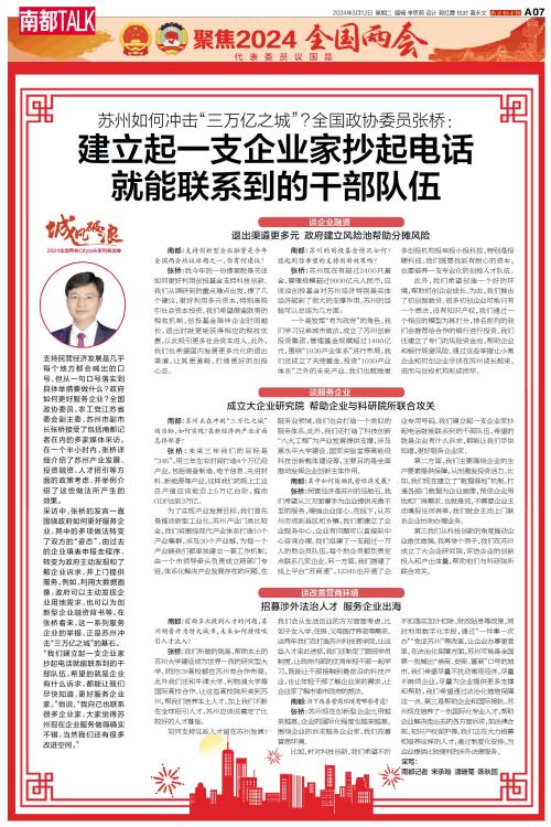 支持民营经济发展是几乎每个地方都会喊出的口号,但从一句口号落实到具体举措要做什么?政府如何更好服务企业?全国政协委员、农工党江苏省委会副主委、苏州市副市长张桥接受了包括南都记者在内的多家媒体采访。