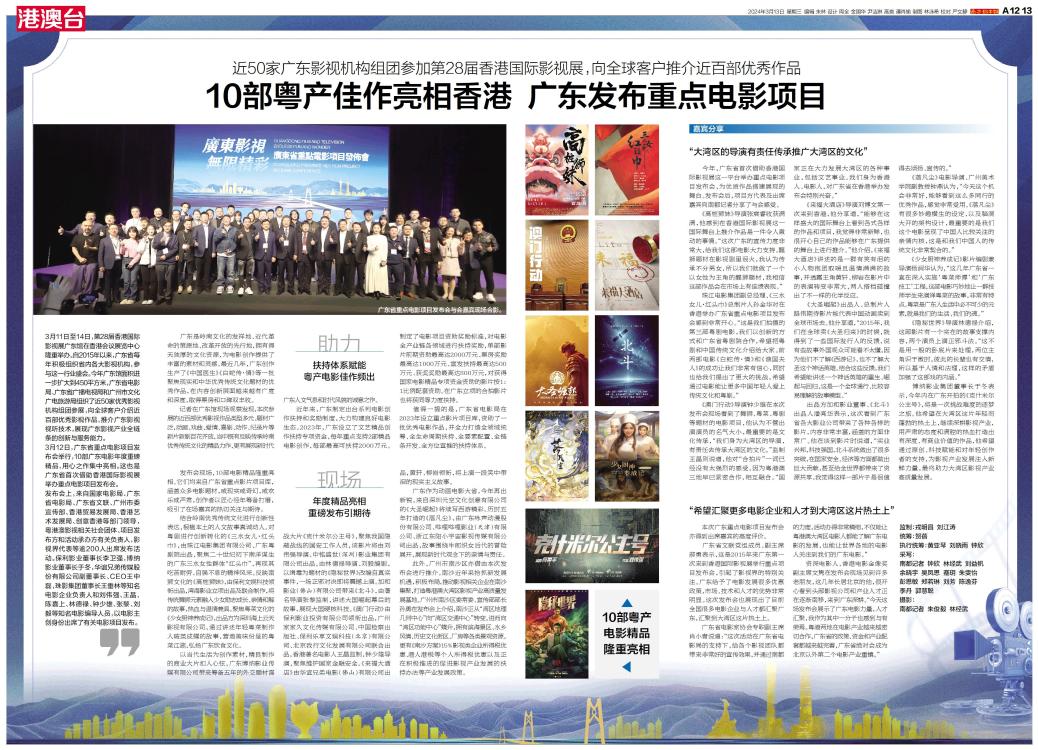 10部粤产佳作亮相香港 广东发布重点电影项目