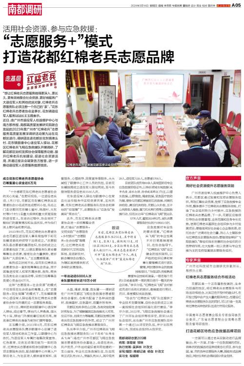 近日,由广州市退役军人权益维护中心与南方都市报、南都高质量发展研究院联合发起的2023年度广州市“红棉老兵”志愿服务高质量发展深调研活动第九站在花都区进行。