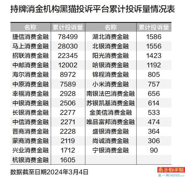 消费金融公司的催收问题到底是一个什么情况?南都·湾财社在黑猫投诉平台进行了数据梳理,当前31家持牌消金公司中,有27家在黑猫投诉平台上有对应的消费者投诉。4家没有出现在黑猫投诉平台上的公司是平安消费金融、建信消费金融、蚂蚁消费金融、长银五八消费金融。