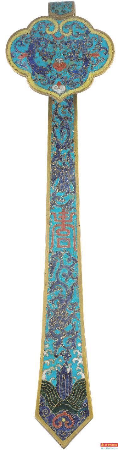 福山寿海龙纹如意(清康熙,约1662-1700年)掐丝珐琅。 李佳捐赠