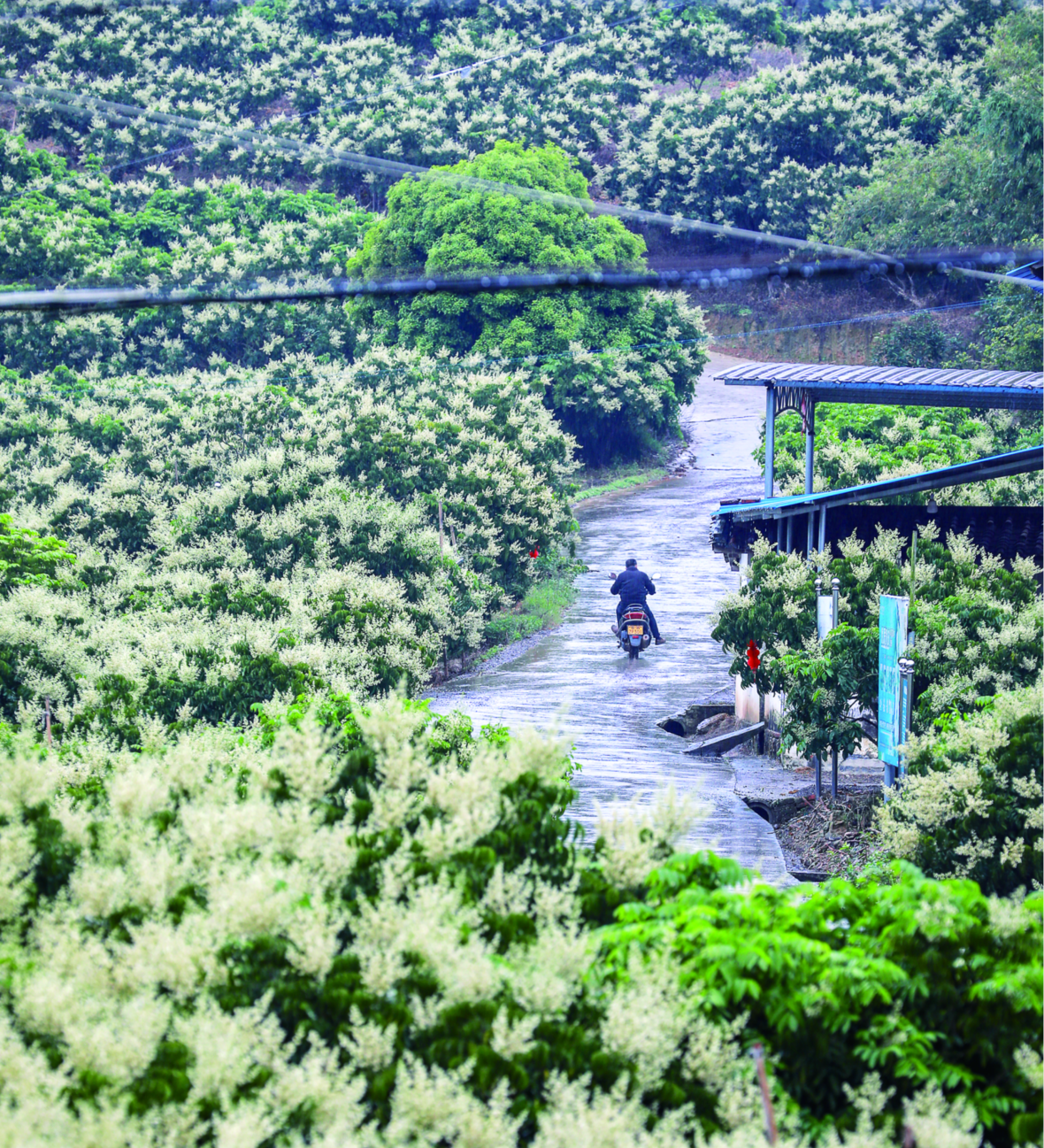 云浮郁南县无核黄皮标准化生产示范基地,漫山遍野的黄皮花随风摇曳,煞是灿烂。