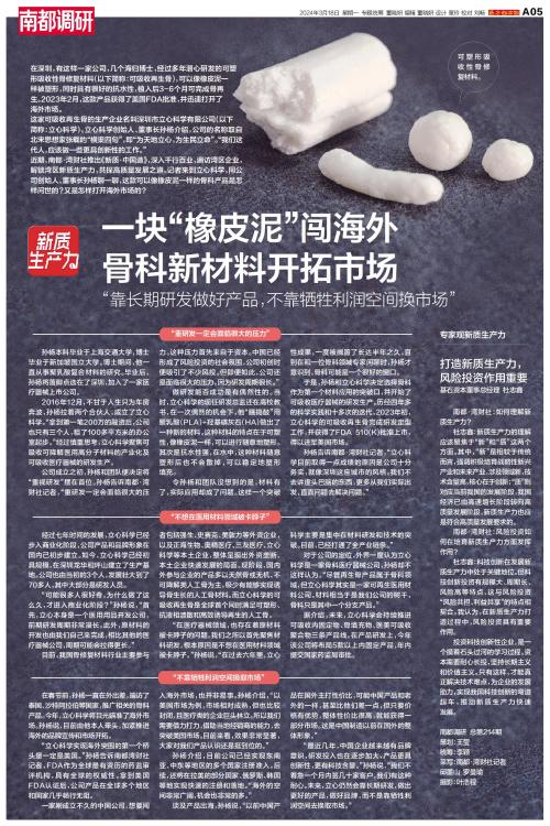 一块“橡皮泥”闯海外 骨科新材料开拓市场