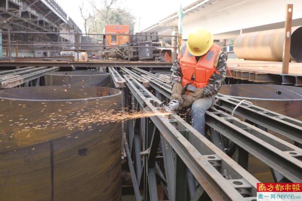 龙年新春,在荔湾区石围塘附近的珠江江面上,广湛高铁广州至佛山段珠江四线特大桥水面施工正紧锣密鼓进行。只见焊花飞溅,悬臂高耸,建设者们忙着搭建施工平台,为水中桩基施工做准备。