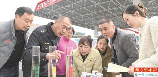 3月13日,在河南省济源市一加油站,质监人员讲解如何鉴别油品质量。 新华社发