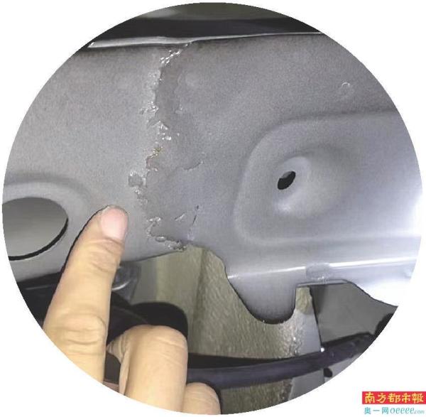 3月10日,郑先生委托第三方检测公司进行鉴定,对方确认车辆左前翼子板整块被更换过,左前翼子板支架连接处与右边前翼子板支架连接处不一样,左边是用焊点连接,右边是用螺丝连接固定。对此,他先后告知厂家与经销商,但厂商均没有给予明确的答复。