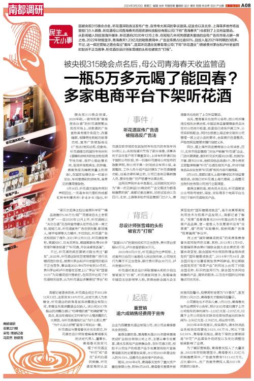 因被央视315晚会点名,听花酒深陷违法发布广告、宣传夸大其词的争议漩涡。