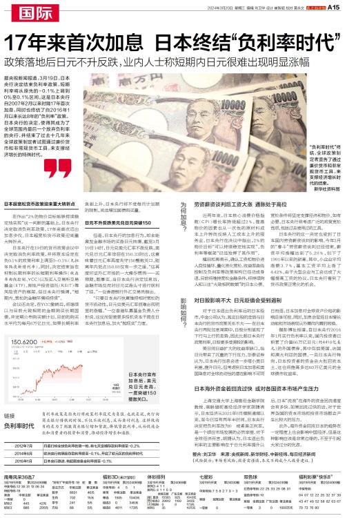 17年来首次加息 日本终结“负利率时代”