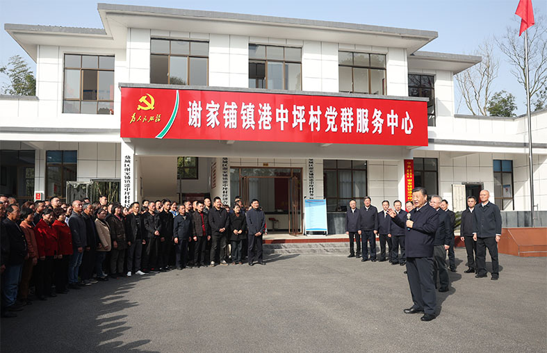 3月19日下午,习近平在常德市鼎城区谢家铺镇港中坪村考察时,同乡亲们亲切交流。 新华社发