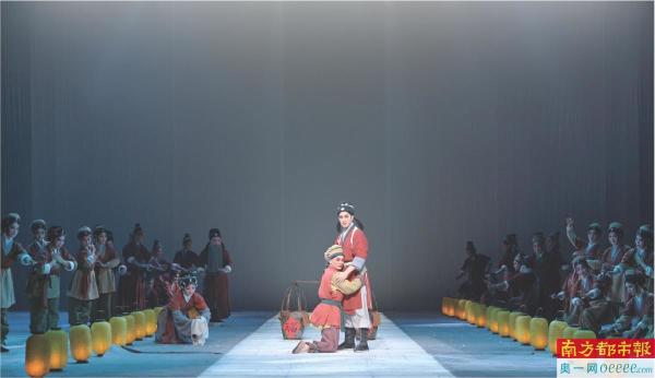 全剧在充满水墨意蕴的浪漫舞台上点点铺开,叙事诗意盎然又恢弘博大,文本典雅优美,唱词精粹凝练,在美感与内涵的共融中呈现出别致的审美品位。