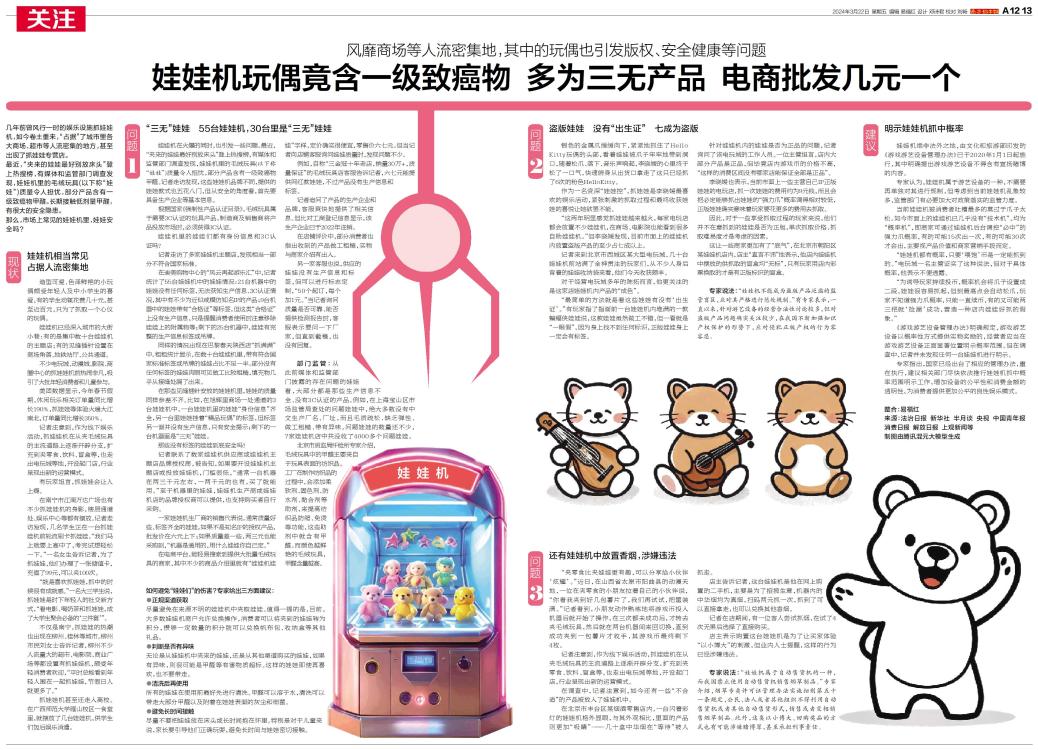 娃娃机玩偶竟含一级致癌物 多为三无产品 电商批发几元一个